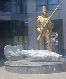 And since I was down by the water riding around on the TTC I decided to go try a Beaver Tail, it's a pastry, quite good, I chose the topping Lemon Merengie. On the way we past the way to the airport, the Harbour Front Community Center(and a school), that's the colourful paintings/mosaics, the silos from where Ray and Fraser jump(close up, before it was far away)