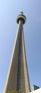 At the stop they call CN Tower North they do have a smaller break and I got off to get myself a coffee at Second Cup, I couldn't resist to buy a slice of Lemon Sponge Cake and a cookie(that I saved for the evening). Also when you look at your pictures afterwards you see funny things like the stickers on the window looking like the guys having coffee are having huge cups!